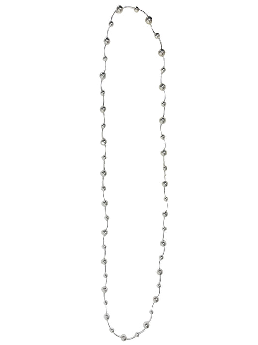 Long silver stretch beaded necklace