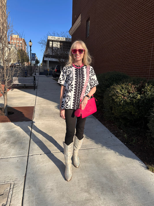 Black and white ornamental top